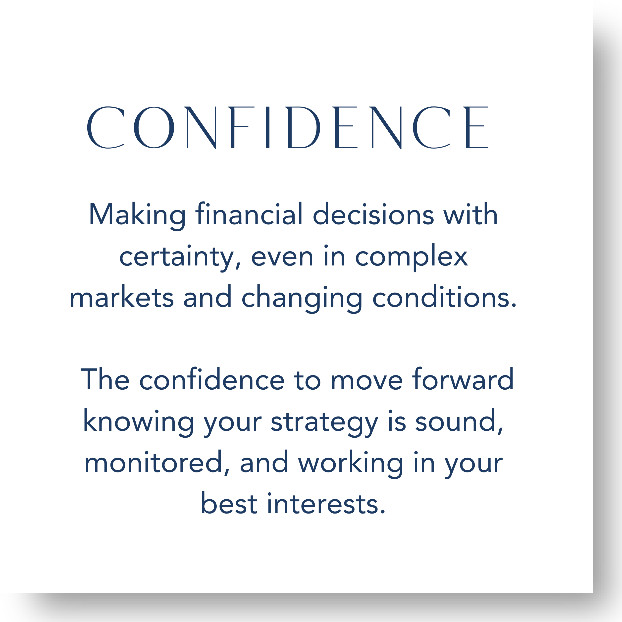 Through genuine connection, we take the time to understand what matters most to you. With clarity, we cut through complexity to define the path forward. And with confidence, our advisers collaborate behind the scenes to ensure every element of your financial strategy is working together in the best possible way.